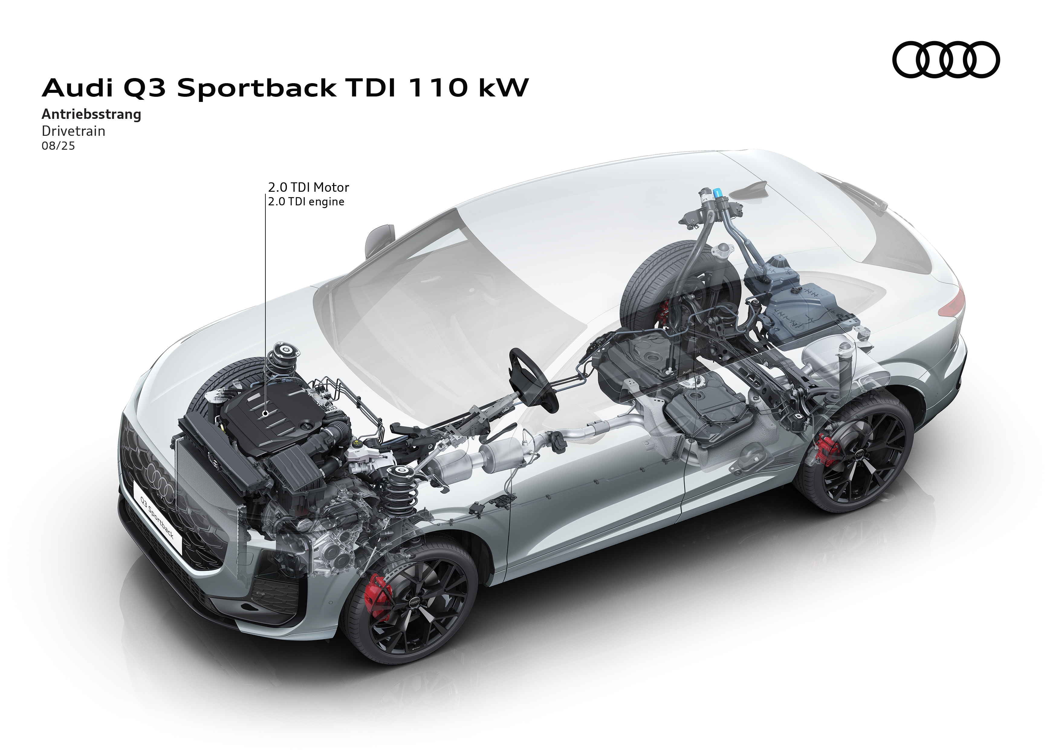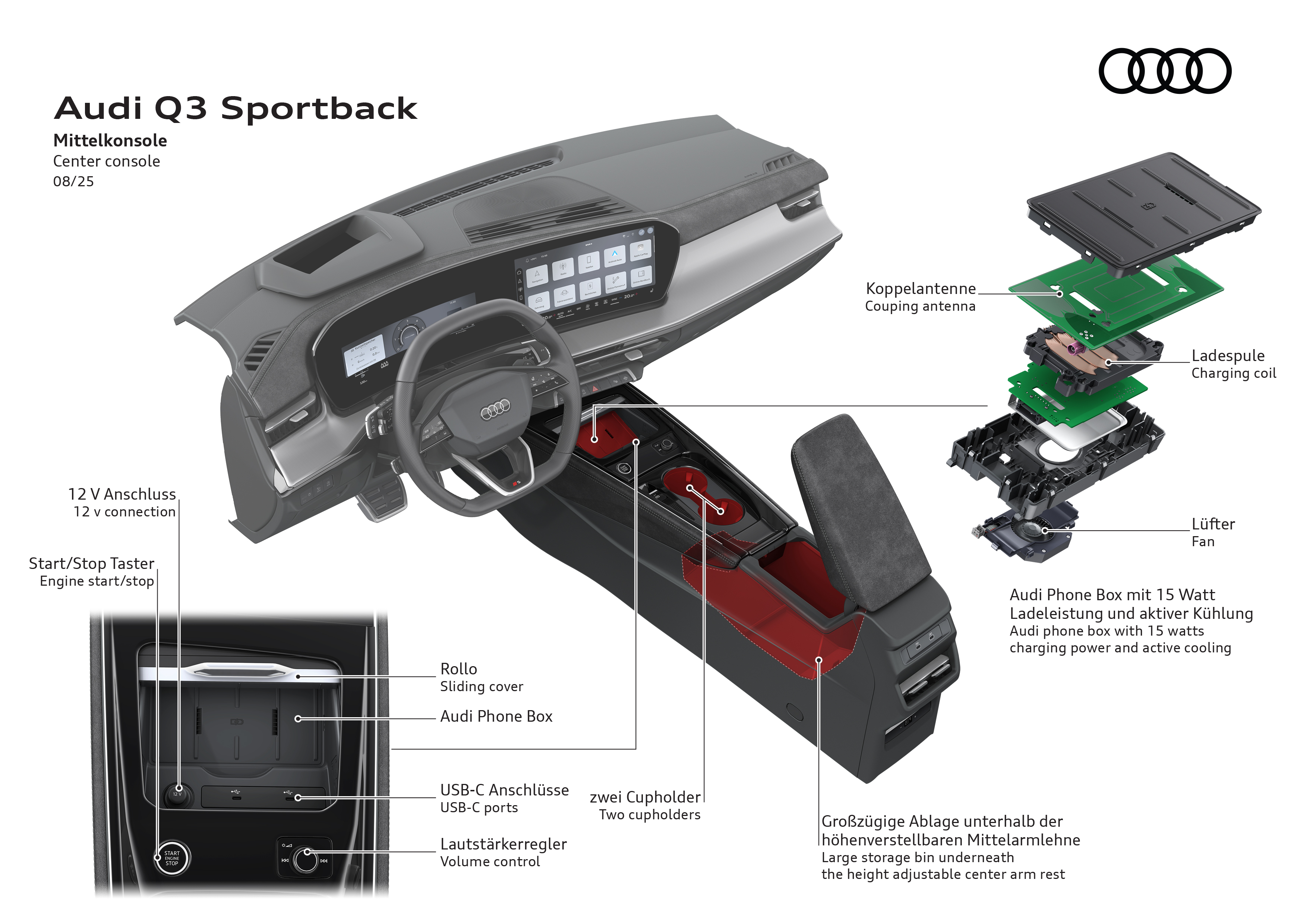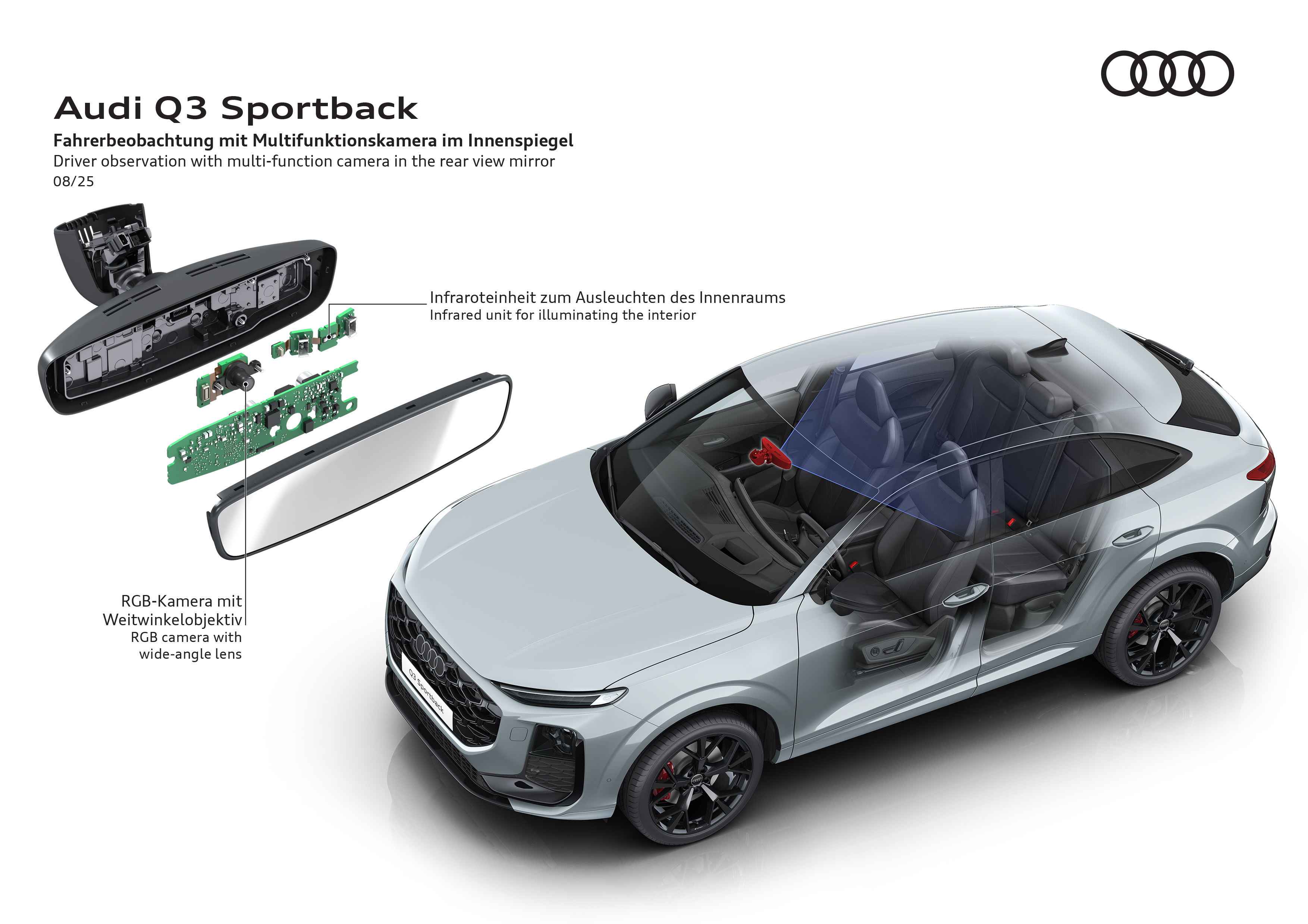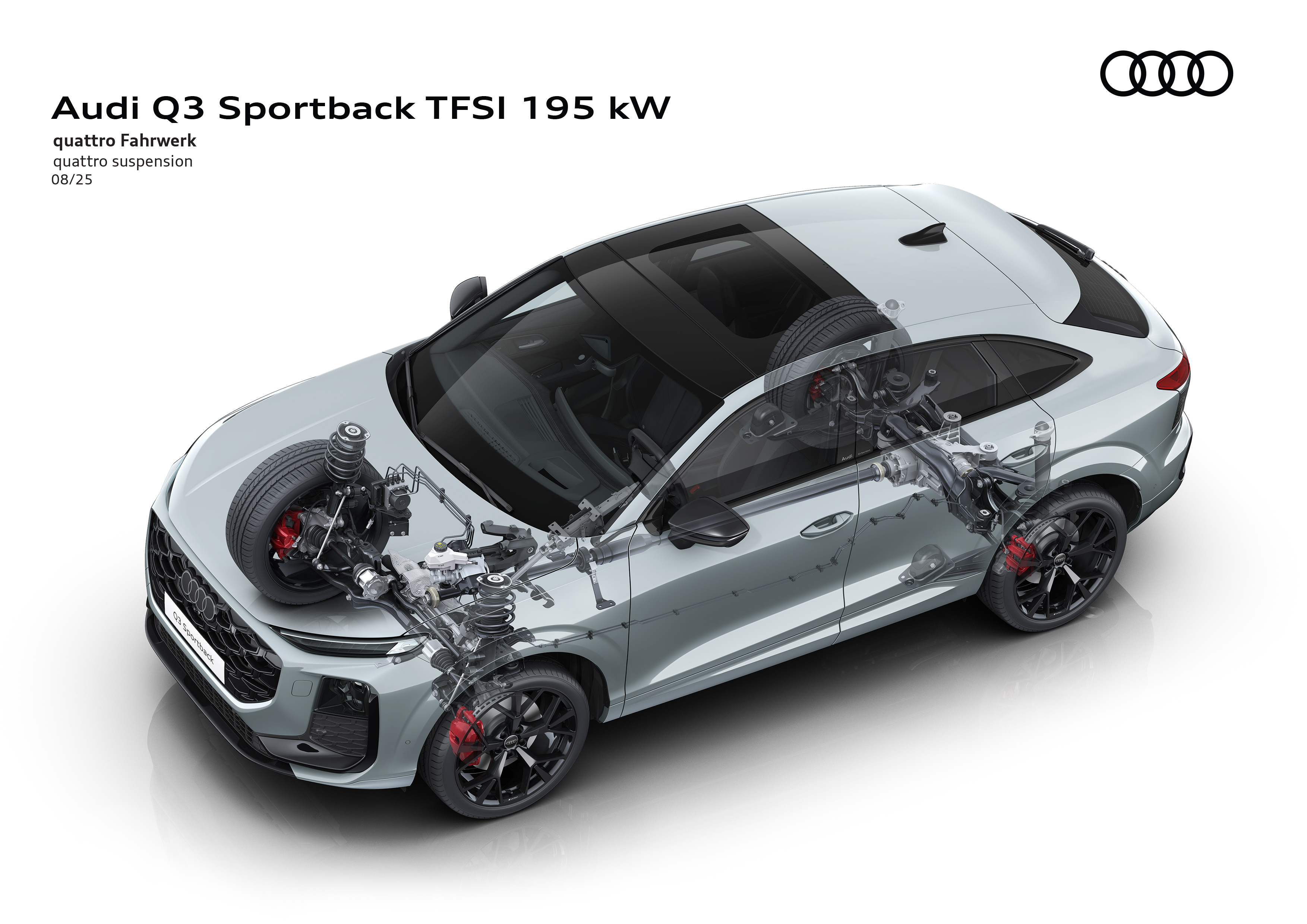 Compared to its predecessor, the new Audi Q3* has an even more muscular and emotional design. Its body is defined by the perfect combination of rounded sections and precise lines. The wide Singleframe is positioned high up, and the sleekly tapered headlights create a focused look and are fully integrated into the vehicle’s aerodynamic concept. The design ensures a particularly efficient airflow around the front end. The controllable cool-air intake is installed in the area under the Singleframe and ensures that the airstream can flow around this area with minimal losses. The parking sensors are also located there. The sensors for the driver assistance systems are installed behind the four rings.