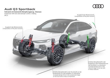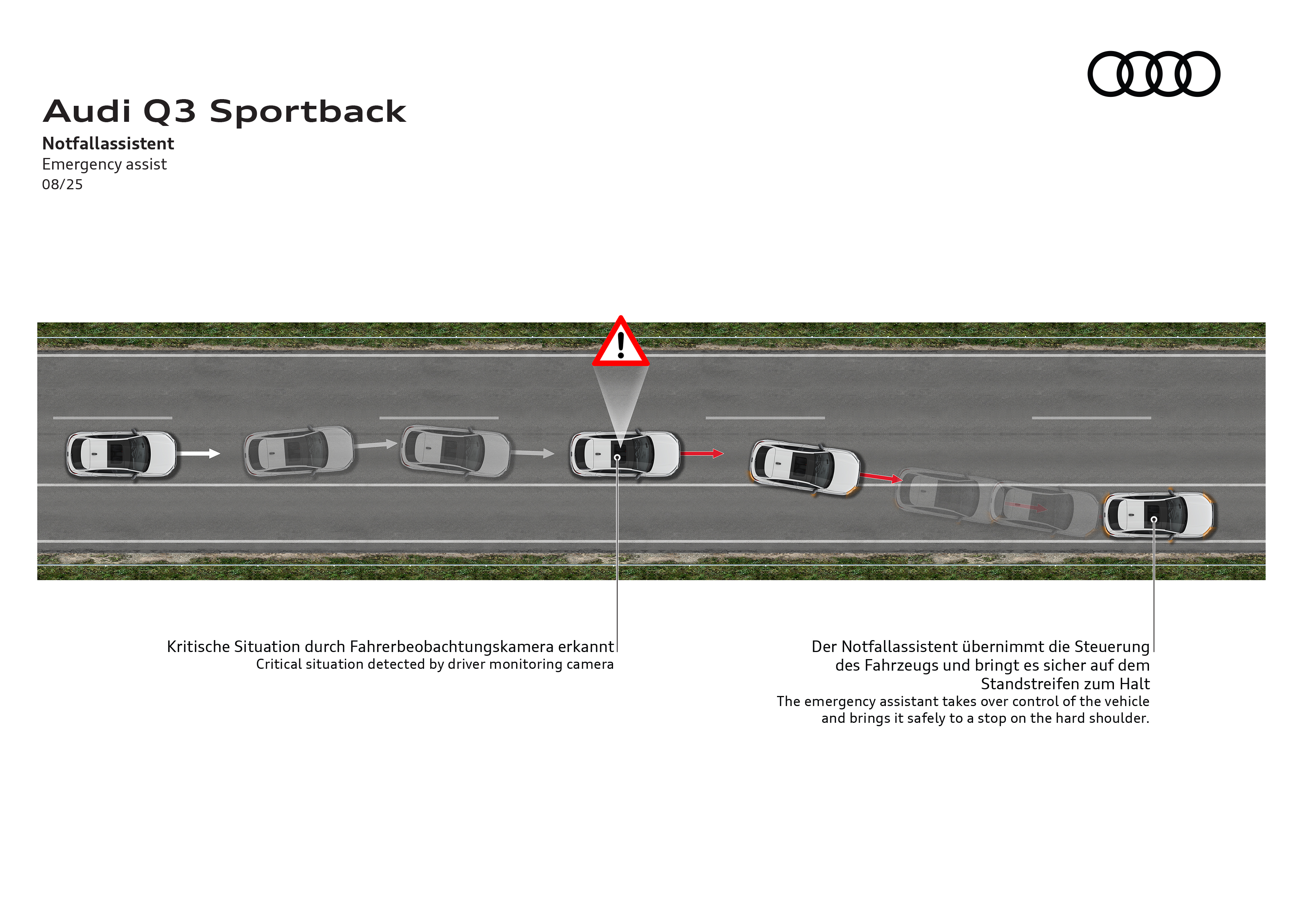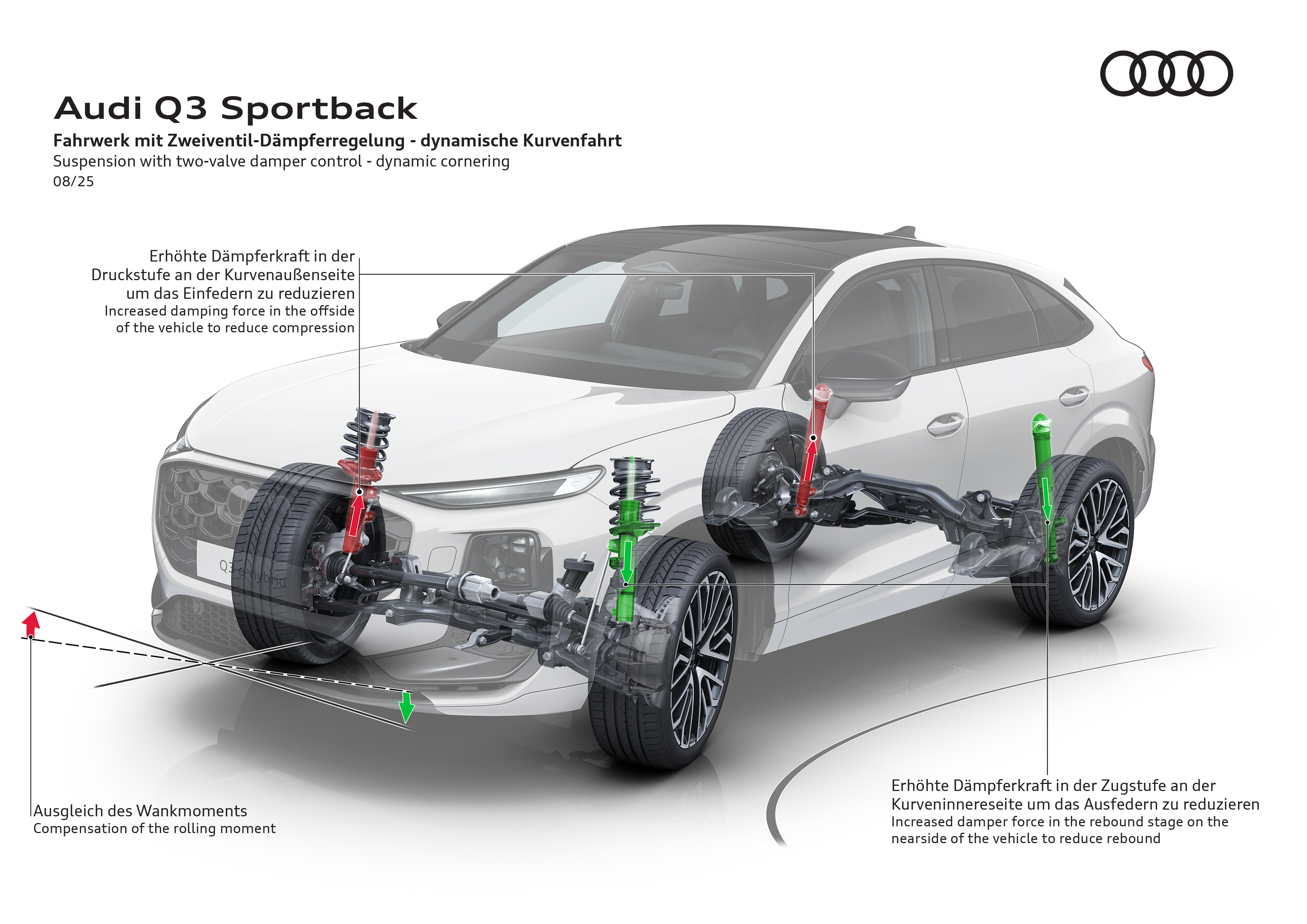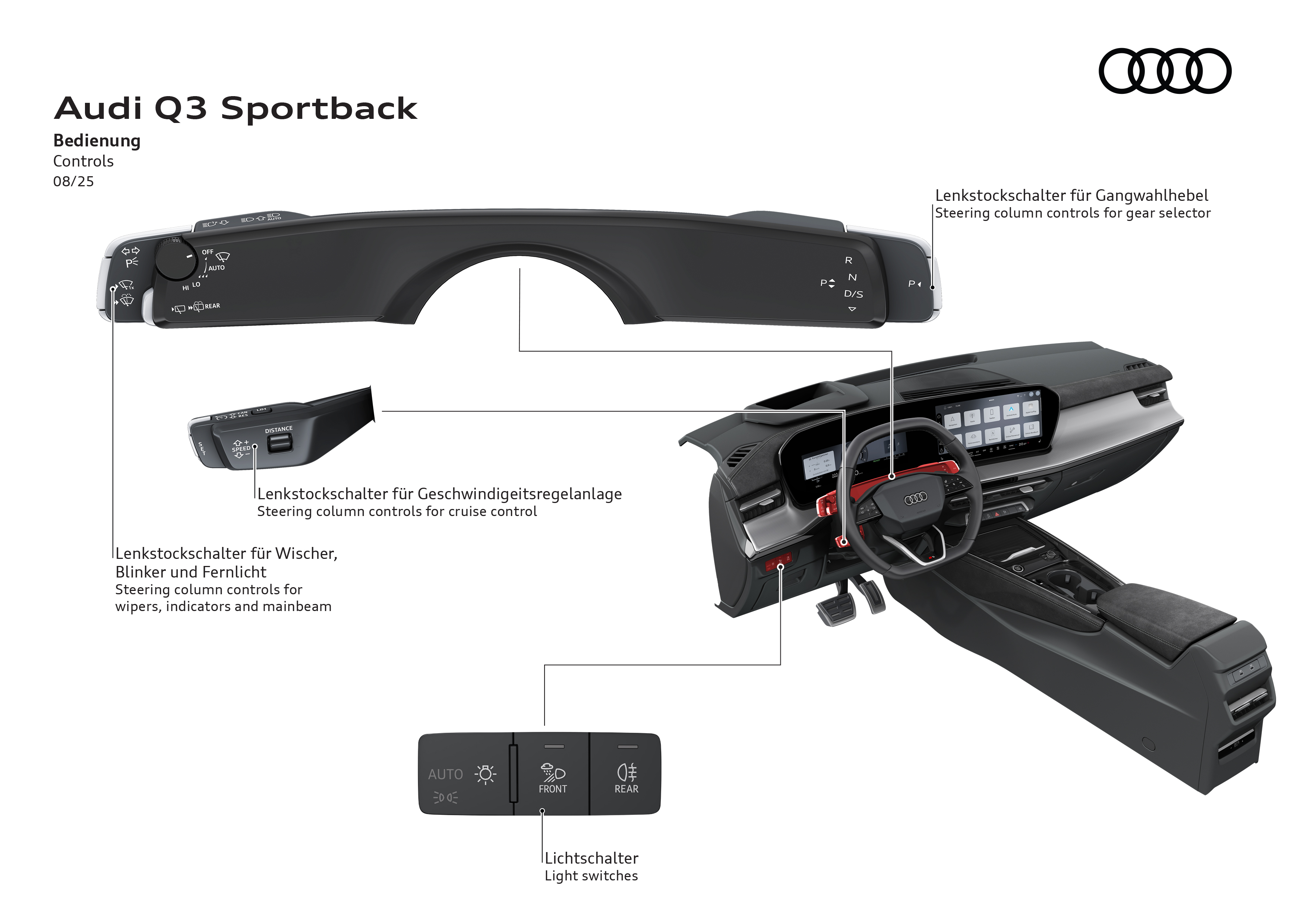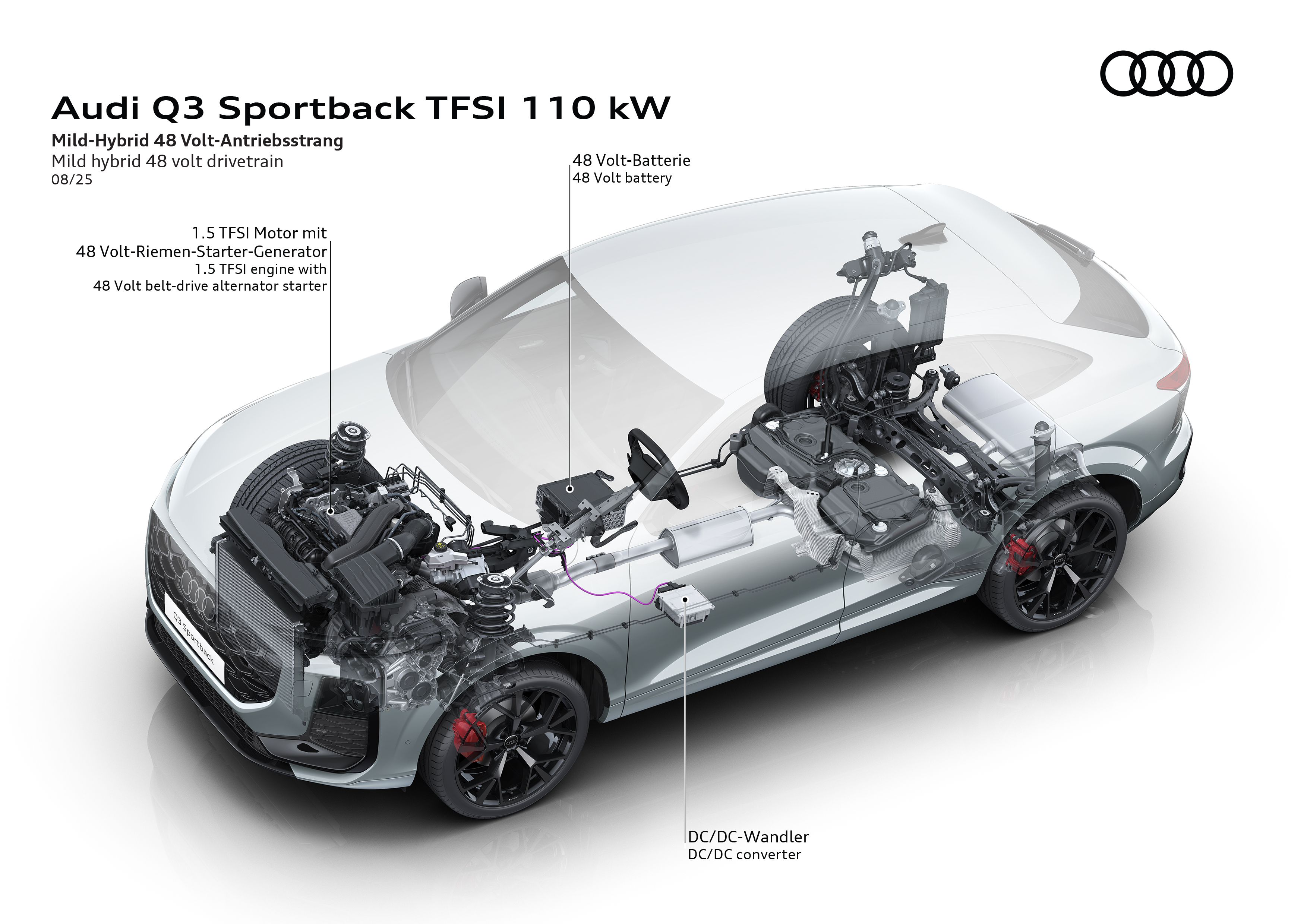 Compared to its predecessor, the new Audi Q3* has an even more muscular and emotional design. Its body is defined by the perfect combination of rounded sections and precise lines. The wide Singleframe is positioned high up, and the sleekly tapered headlights create a focused look and are fully integrated into the vehicle’s aerodynamic concept. The design ensures a particularly efficient airflow around the front end. The controllable cool-air intake is installed in the area under the Singleframe and ensures that the airstream can flow around this area with minimal losses. The parking sensors are also located there. The sensors for the driver assistance systems are installed behind the four rings.